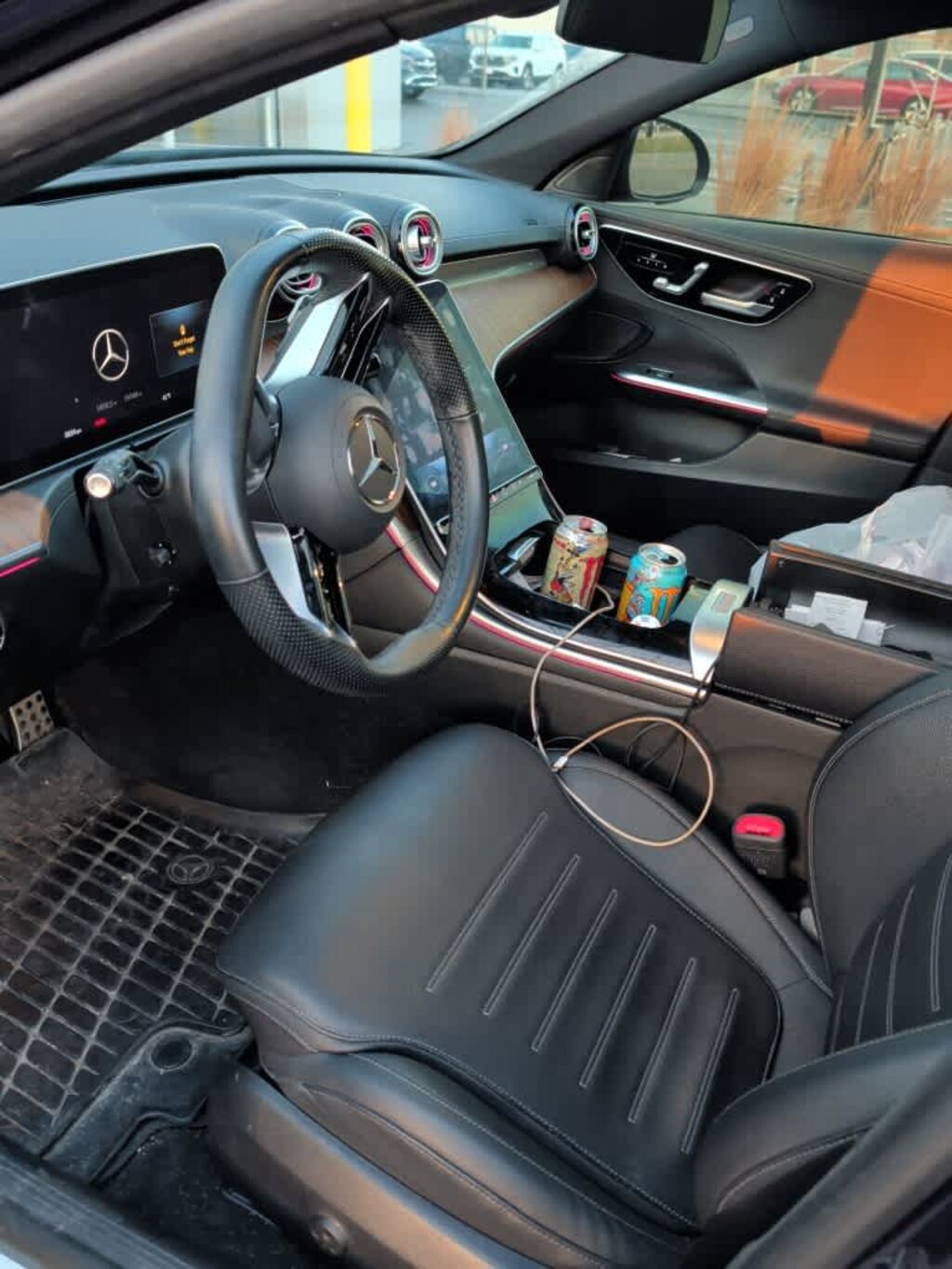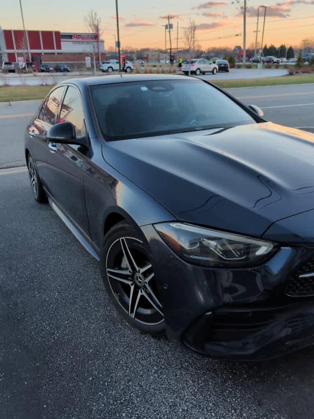 AMG® LINE W/NIGHT PACKAGE Sport Suspension w/Sport Steering System, AMG® Body Styling, Star Grille, AMG® Line Interior, Brushed Aluminum Sport Pedals w/Rubber Studs, AMG® Floor Mats, Flat-Bottom Sport Steering Wheel, MB-Tex Dashboard, Perforated Brake Discs, Mercedes-Benz lettered calipers, AMG® Line Exterior, EXCLUSIVE TRIM PACKAGE Sound Package, Online Music Streaming, Sound Personalization, Burmester® 3D Surround Sound System w/Dolby Atmos, Illuminated Door Sills, Enhanced Ambient Lighting, Parking Assist Package, Parking Pilot w/Surround View System, GUARD 360, Surround View System, Inductive Wireless Charging, PANORAMA SUNROOF, ACTIVE DISTANCE ASSIST DISTRONIC®, SIRIUSXM SATELLITE RADIO 6-month trial, HEATED STEERING WHEEL, BLACK SPOILER. Mercedes-Benz C 300 with Lunar Blue Metallic exterior and AMG® Black interior features a 4 Cylinder Engine with 255 HP at 5800 RPM*.